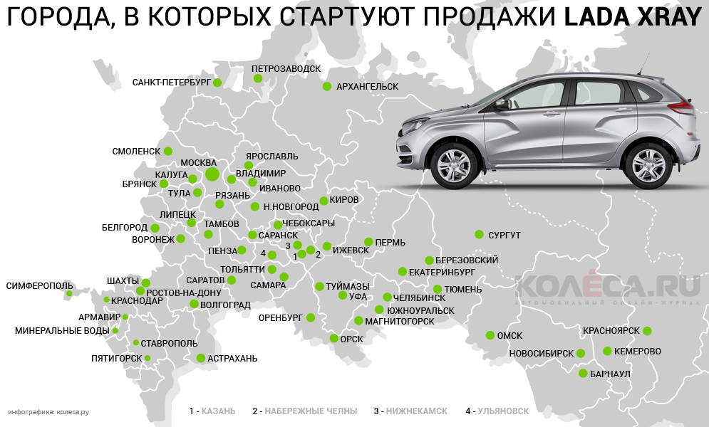 Список дилеров где стартуют продажи Lada Xray 14 февраля