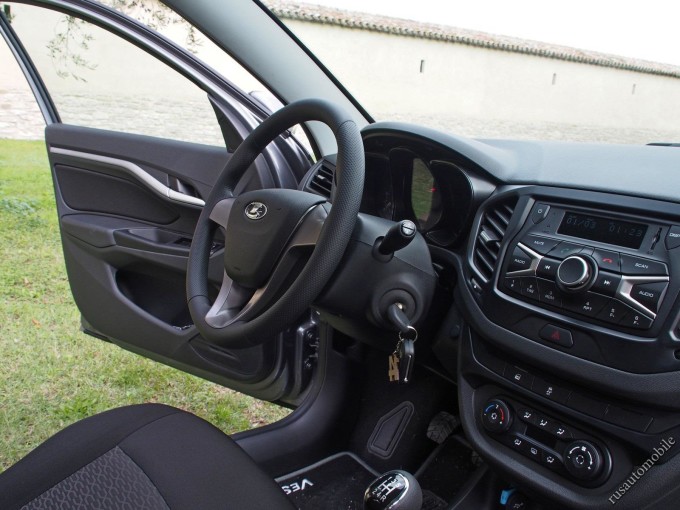 Руль великоват, зато регулируется по двум направлениям, чего нет у главных конкурентов Весты — Hyundai Solaris и Kia Rio
